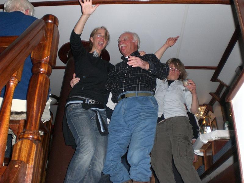 From 4 o’clock on saturday afternoon we arrive on the Noorderlicht. All together we have 10 Dutch, 5 German, 3 English and 1 Australian on board, together with the Dutch crew (4) and the Danish guide. It took some time to know all the names, but we could get along very well with all 24 during the 11 day trip on this sailing ship without sails 😉 Boom and some sails were broken in the storm. Captain Gert didn’t like this, but now we had to do everything on the engine. Special mentioning our cook Menthe, who deserves a michelin star for his three course meals everyday and good lunches and breakfasts.