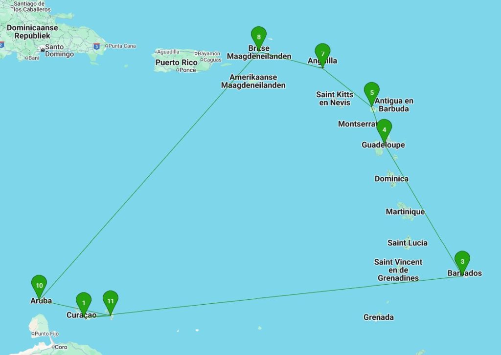 Er was al snel een aanpassing. We gaan een dag eerder, omdat het vliegtuig niet vliegt op zaterdag, met verblijf vergoed door Corendon. Dat is natuurlijk geen probleem dan. Hebben we mooi een dag om iets van het eiland / Willemstad te gaan bekijken. EN we doen deze keer gewoon alle beloofde havens ook aan!