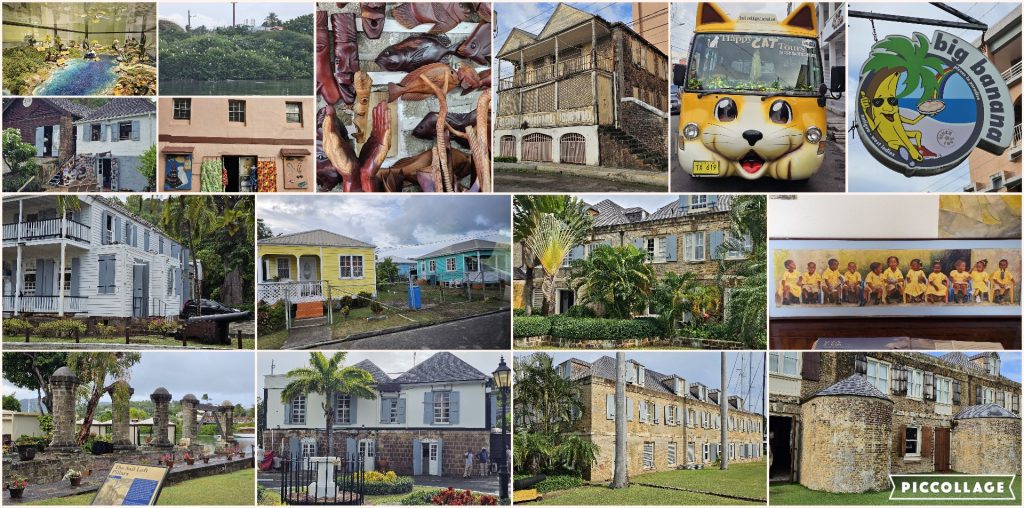 Hier kijken we rond in oude gebouwen uit de 18de en 19de eeuw, een museum en nemen koffie met bananencake. Wel af en toe een bui. Er is ook een marina waar belachelijk grote boten liggen, zowel motor- als zeilboten. Bijzonder deze rijkdom op een armoedig eiland.