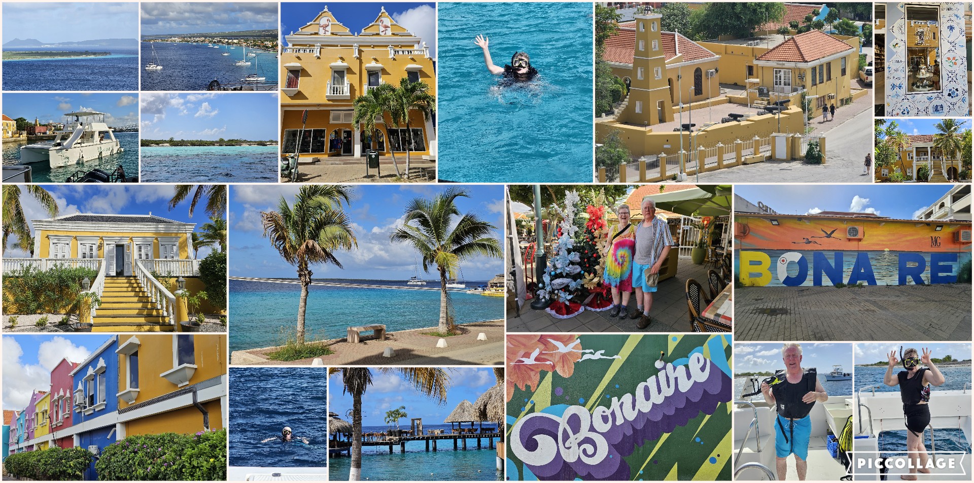 We vertrekken vanaf naast het schip naar Klein Bonaire. Daar gaan we onze eerste snorkel tocht maken en we zien vele gekleurde vissen, diverse niet zo kleurrijke koralen en het water is heerlijk. Zelfs nog een gevlekte pijlstaartrog. Na een kleine 45 minuten op naar de volgende snorkelplek aan de kust van Bonaire zelf, Andrea II Dive Site. Daar blijven we een uur en zien een (of twee?) zeeschildpadden! Naast weer vele gekleurde vissen en wuivende koraal velden. Bij uitrusten en wanneer je wil, is er een drankje beschikbaar. Op de terugreis zelfs rum punch. Rustig water en veel gezien, dus weer een geslaagde excursie.