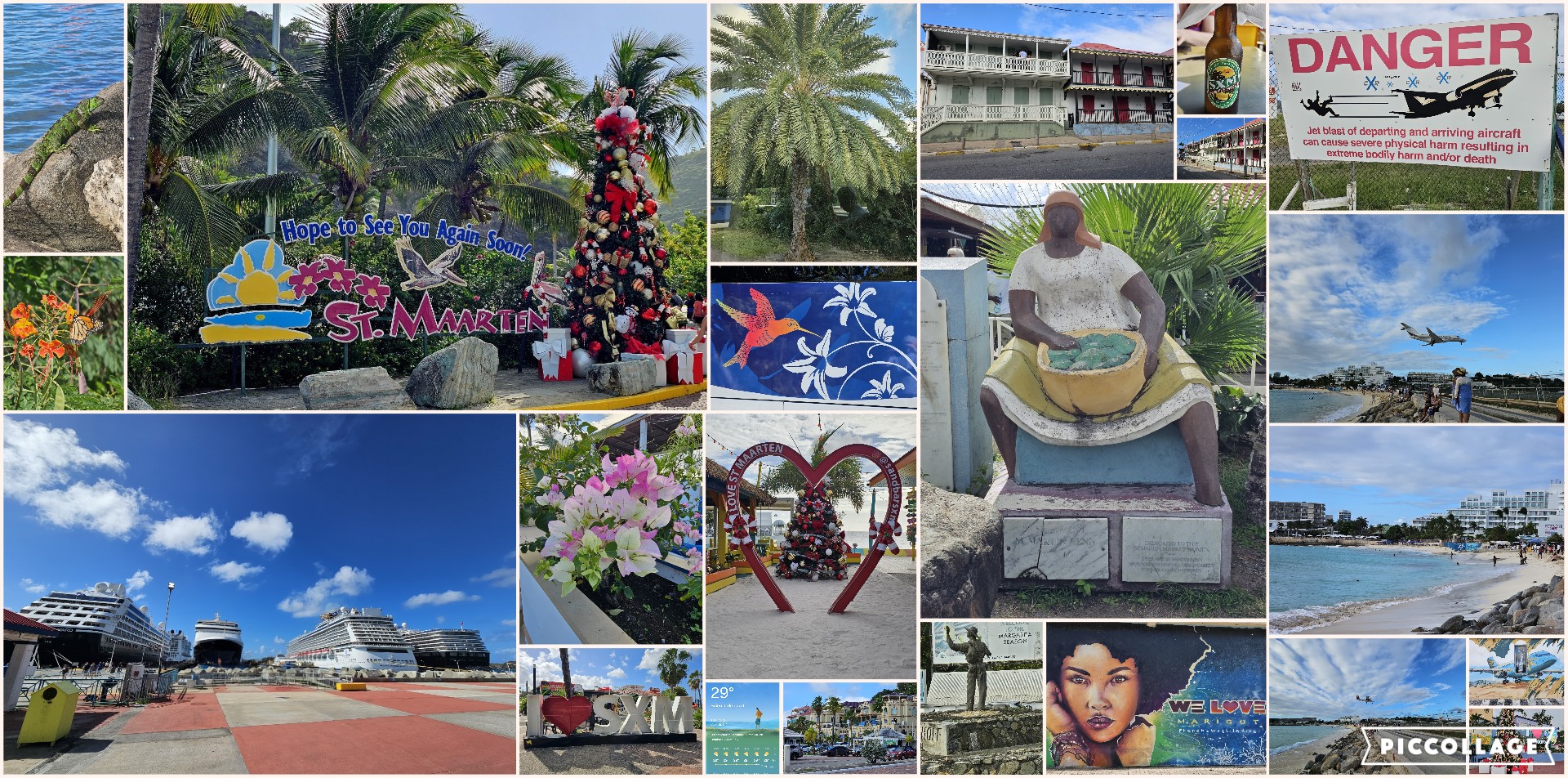 We arriveren rond 8 uur op St. Maarten op deze Sinterklaasdag. Na het ontbijt nog even van boord om een cache te zoeken en te vinden! Ook nog even langs de winkeltjes met souvenirtjes (kerstbal) en vele juwelen winkeltjes. Terug omkleden en weer insmeren, nog een drankje en onze lunch voor de excursie (Two Nations en Maho Beach) om 12:50 vertrekt.