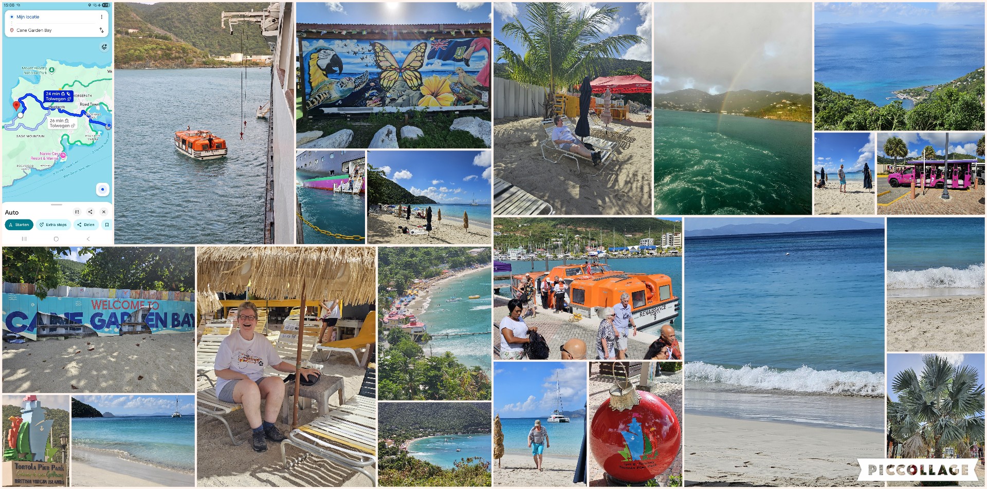 Vandaag met de tender aan land, maar eerst ontbijt met vriendelijke Engelsen. Tijdens het wachten op de tender zien we de Renaissance film die je kunt kopen. Ziet er leuk uit, maar wat kost het? Even over 11 uur waren we aan land en kijken rond in Tortola Pier Park. Super toeristisch met souvenir winkeltjes en juwelen winkels.