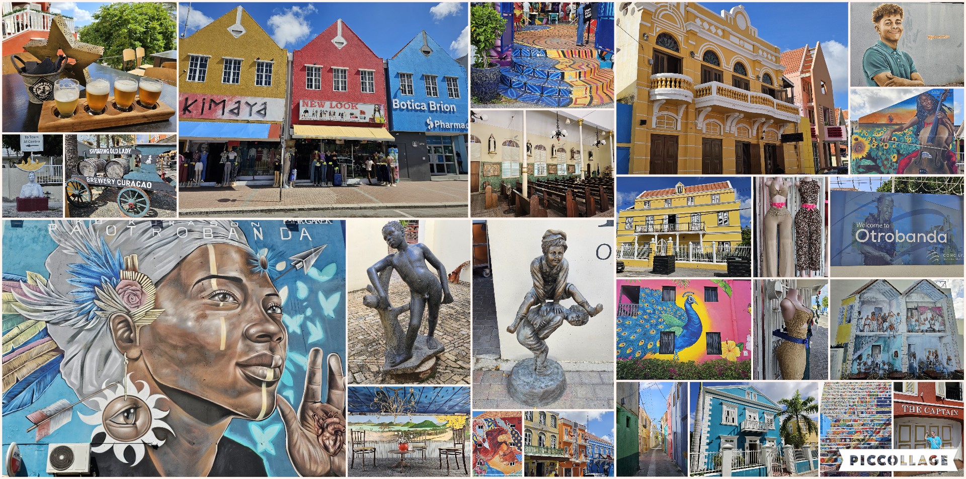 Na het ontbijt willen we op stap, maar dat mag niet. Terug naar de receptie en die zeggen dat het pas na 10 uur mag. Daar wachten we dan maar op. Om 10:15 kunnen we er dan toch af voor een wandeling door Kura Hulanda Village en de rest van Otrabanda. Vele gekleurde huizen, de een beter onderhouden dan de ander, en veel muurschilderingen. Erg leuk om dat ook nog gezien te hebben. Op weg terug naar de boot ontdekken we nog een brouwerij! We nemen een proef plankje met 4 biertjes van de Swinging Old Lady Brewery Curaçao. Dan toch maar weer aan boord, het is daar koeler! Rond 13 uur tijd voor lunch en we nemen later nog een cola en een pinacolada ter afsluiting van de vakantie. We hebben genoten, maar blij terug te gaan naar koeler Nederland.